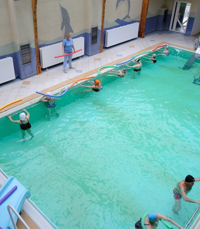 Gimnastyka w wodzie pozwala na wykonywanie ćwiczeń w odciążeniu, wpływa korzystnie na układ ruchu, układ krążenia i układ oddechowy. Solanka jest naturalnym środkiem leczniczym pochodzącym z ziemi.